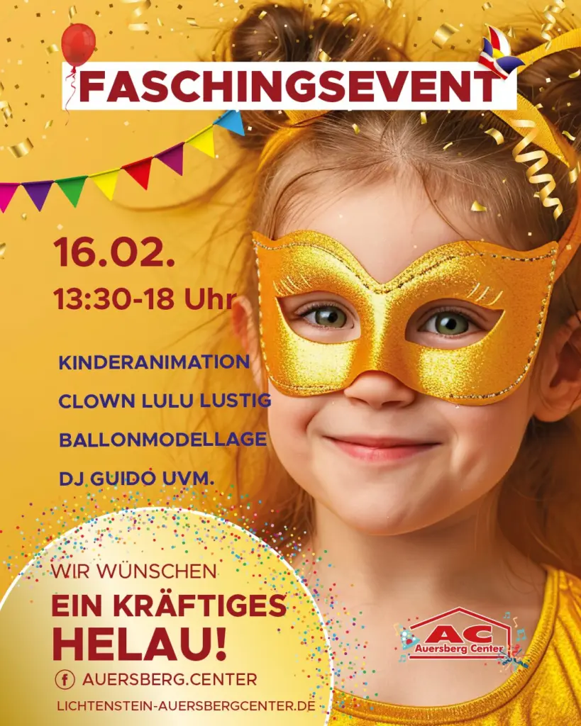 Am 16.02. von 13:30–18:00 Uhr laden wir alle kleinen und großen Faschingsfans herzlich zu unserem bunten Faschingsevent ein.